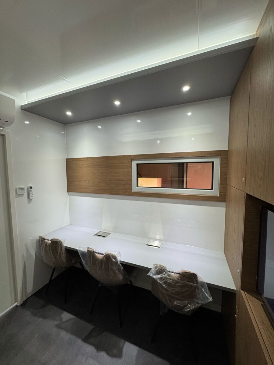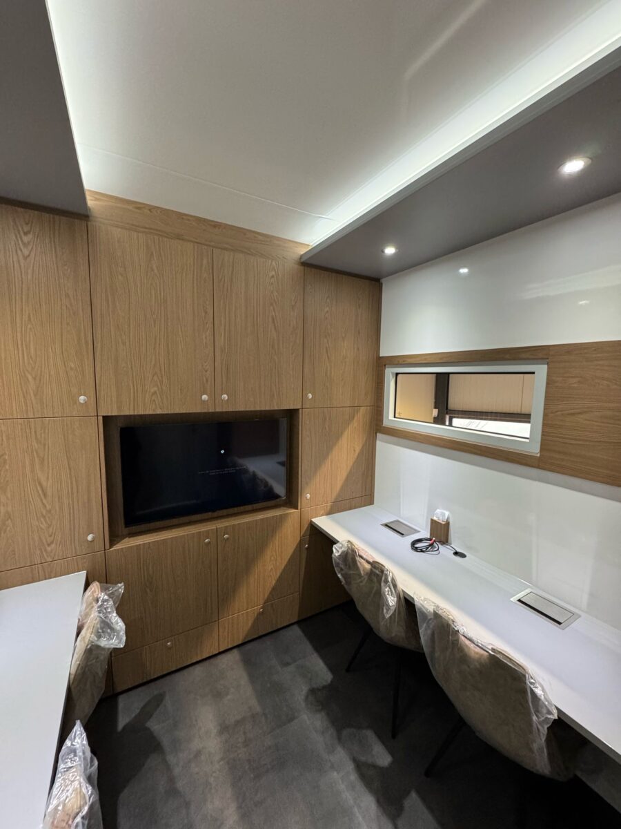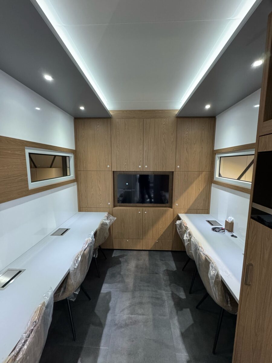 The newly redesigned Engineer’s Office, launched in 2025, reflects extensive input from race teams to better support their evolving needs. This latest model accommodates up to five engineers and is equipped with display capabilities, enabling real-time data review and direct collaboration with the driver.
